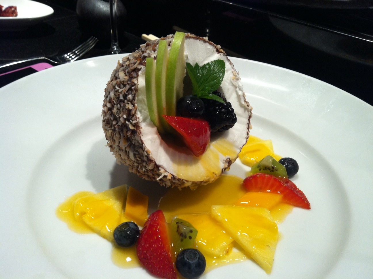 高校時代の仲良しジョアンと娘のブランディー孫のミアとグランドワイレアにオープンしたアランウオングのアマジアに行きました.すしカウンターにすわった ので、3人のシェフとお喋りしながら、アランウオングスタイルのお寿司を一敗いただきました.アメリカではすしロールがはやっていて、日本で食べれない物 をメニューからえらびました。ロミロミロール,トムヤンクンロール、チャズケロール(こんぶスープを飲みながら食べるの).デザートにかきごうりとたのん だら、氷の代わりにパインアップルがでてきました。口に入れるととろけて美味しいいいいいい!お寿司の写真とれる前に全部食べちゃったので、デザート行き ますね.リリコイマラサダス、イチゴケーキ、チョコレートプディング,パインアップルシェイブアイス、ココナツソルベ。